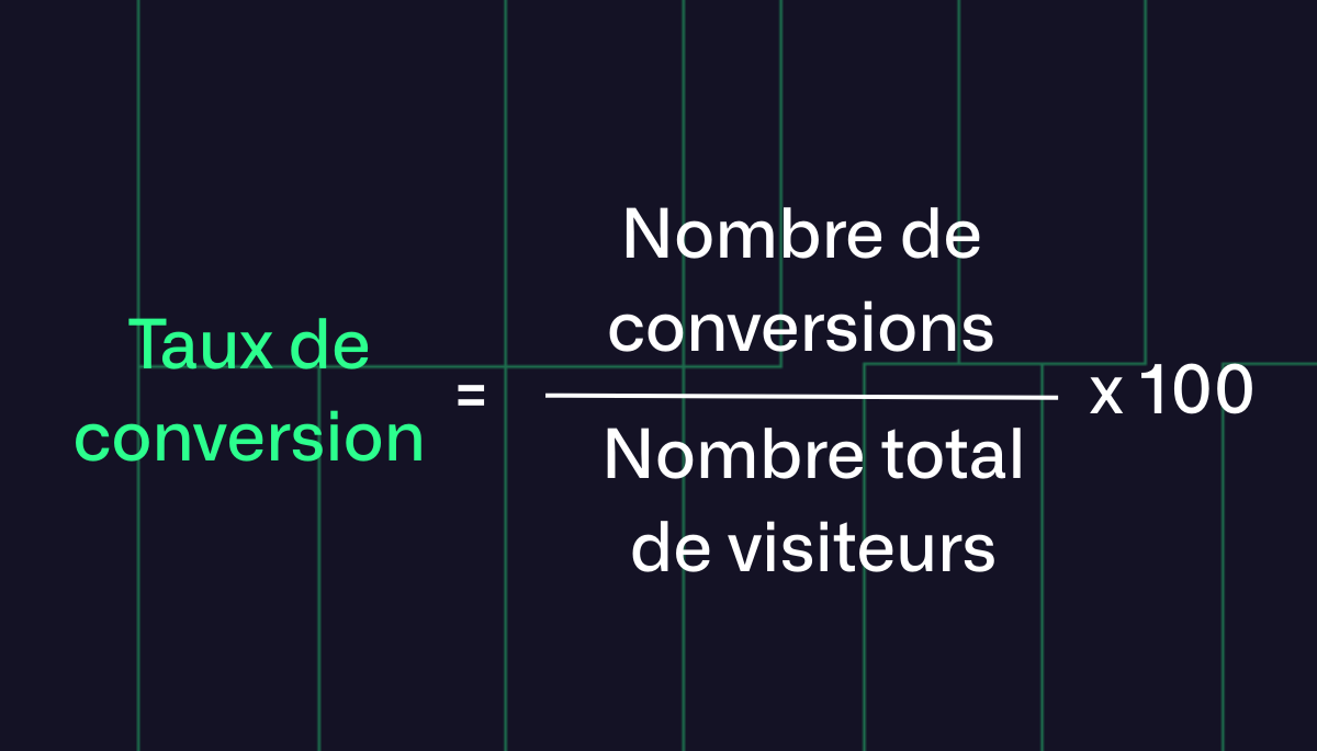Le taux de conversion est l'un des indicateurs les plus parlants pour mesurer la performance business d'un site. Il correspond au pourcentage de visiteurs ayant réalisé une action-clé : achat, inscription à une newsletter, demande de devis, téléchargement d'un document, etc. La formule est simple :